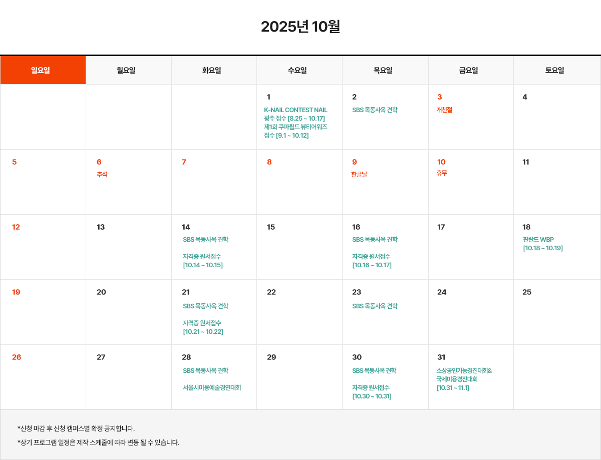 35 | 2025³â 10¿ù ¹æ¼Û±¹ ÇöÀå¼ö¾÷ ÇÁ·Î±×·¥ÀÏÁ¤ | º»»ç | 2025-10-16 |